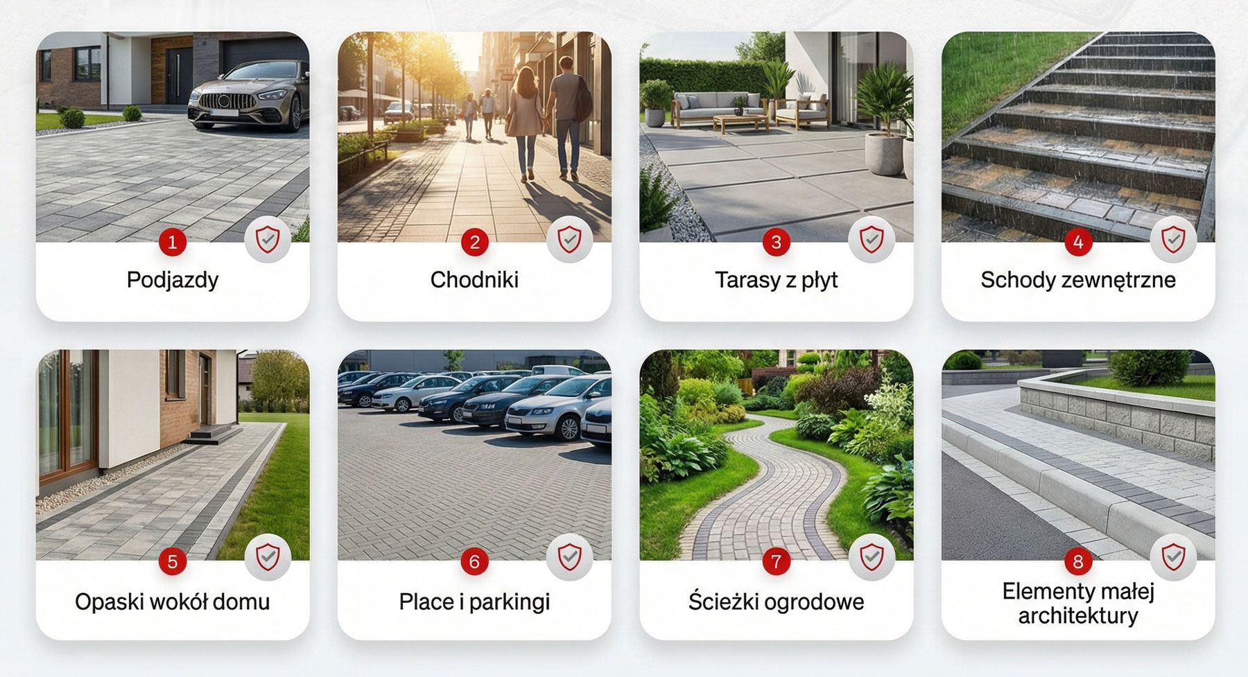 • Tarasy i podjazdy – intensywnie użytkowane strefy domowe.